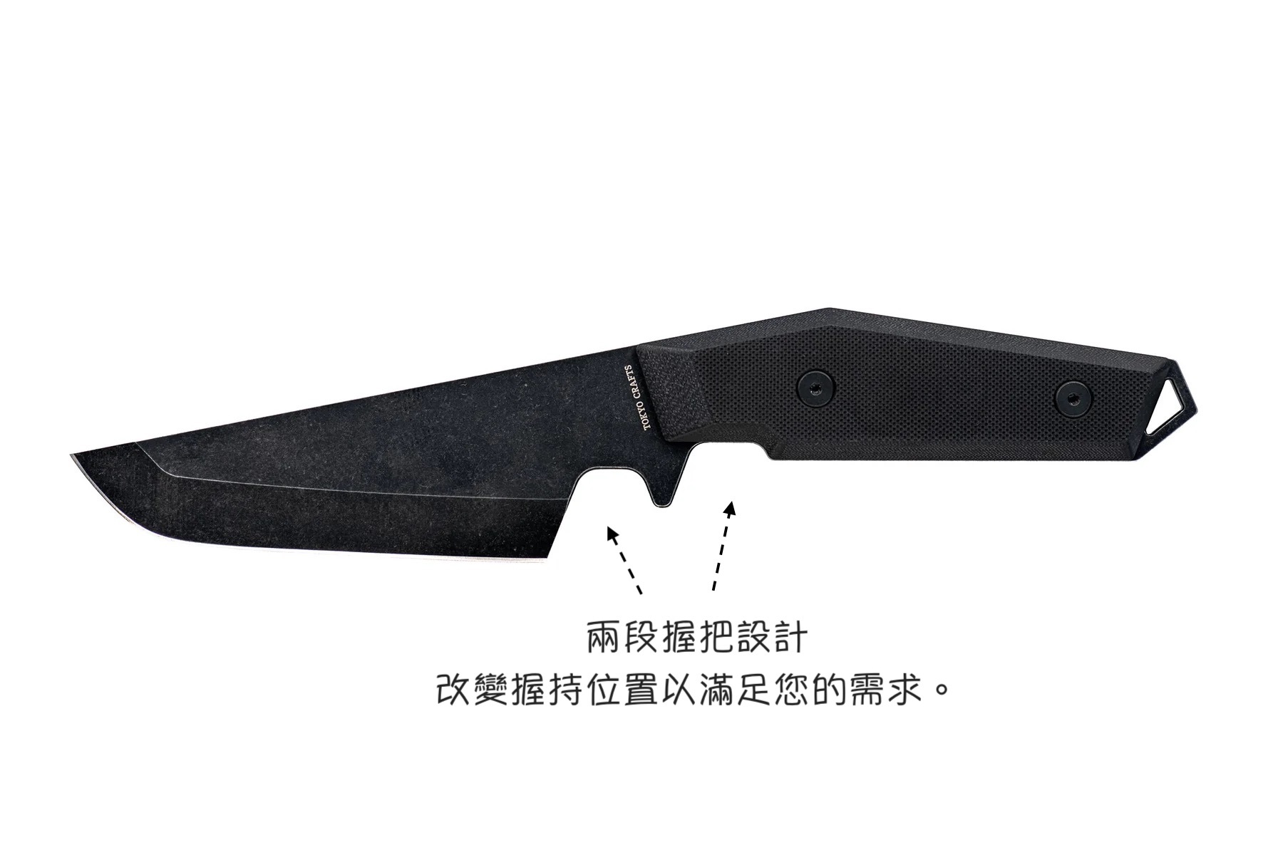 全貫穿結構,一體式刀刃手柄,厚度3.5mm,可承受警棍等高強度使用。