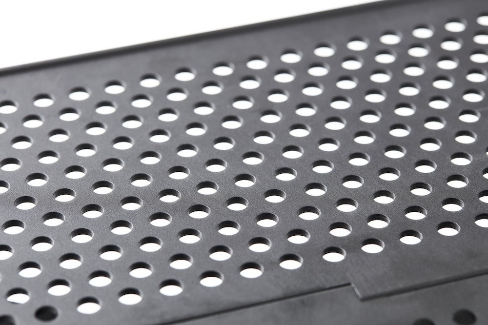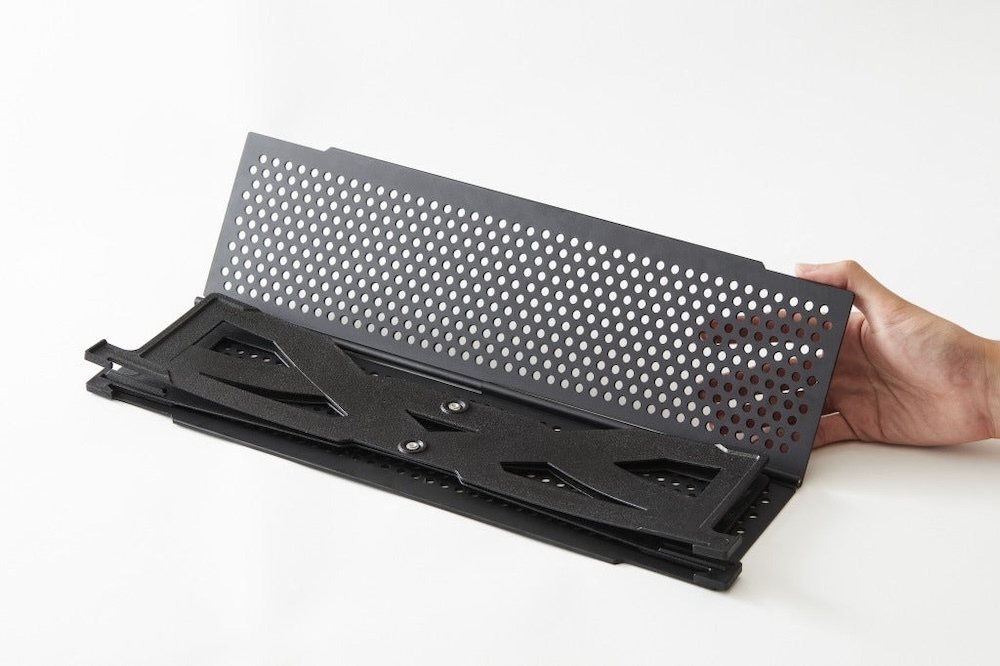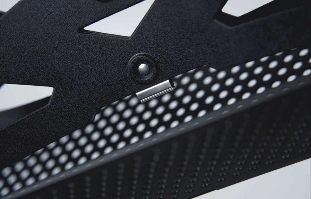 桌板表面經過黑色陽極氧化處理,呈現質感紮實且滑順的觸感。