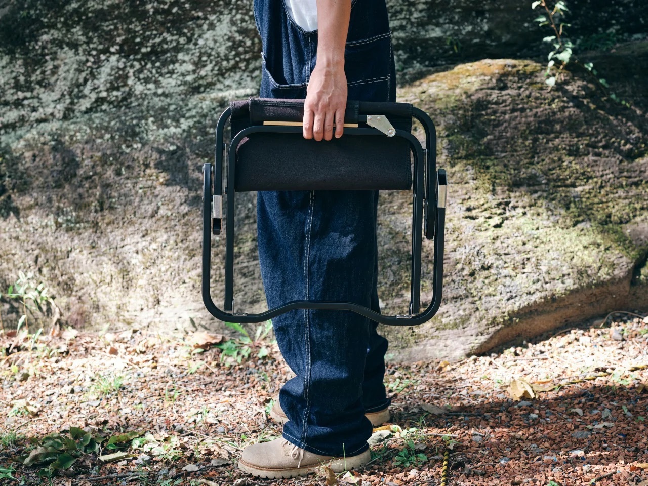 我們設計了一種不會讓您坐得太深的椅子,並且在座墊上採用了適度有彈性的材料,支持平穩的重心轉移,使得像是生火這樣的坐著工作也能順利進行。椅扶手採用了成長迅速並且受到SDGs關注的竹材,使其設計更加融入自然。