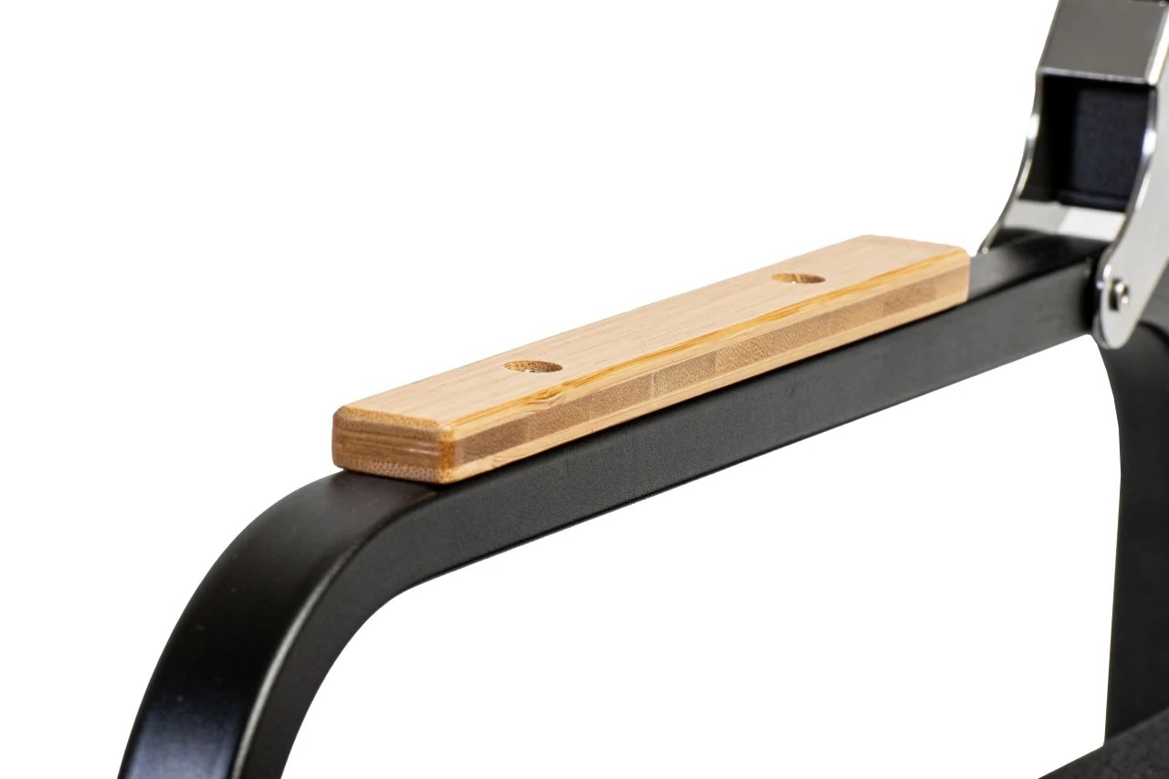 扶手採用耐溫變化影響少且觸感良好的竹製材料。與桌子相同的材質質感,設計統一感十足。