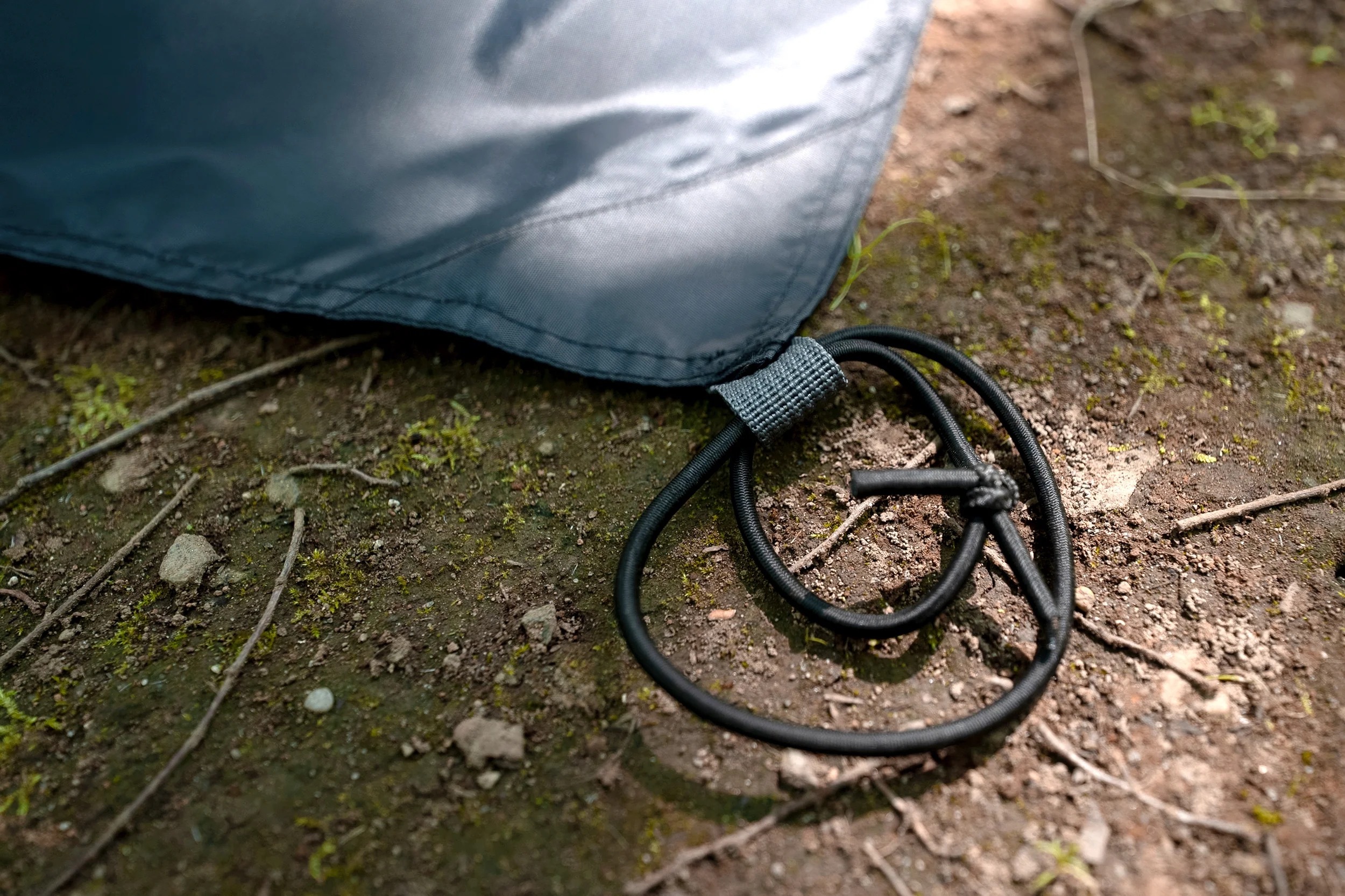 只需將6處橡膠環固定於營釘上,或勾掛在內帳的營釘上即可。